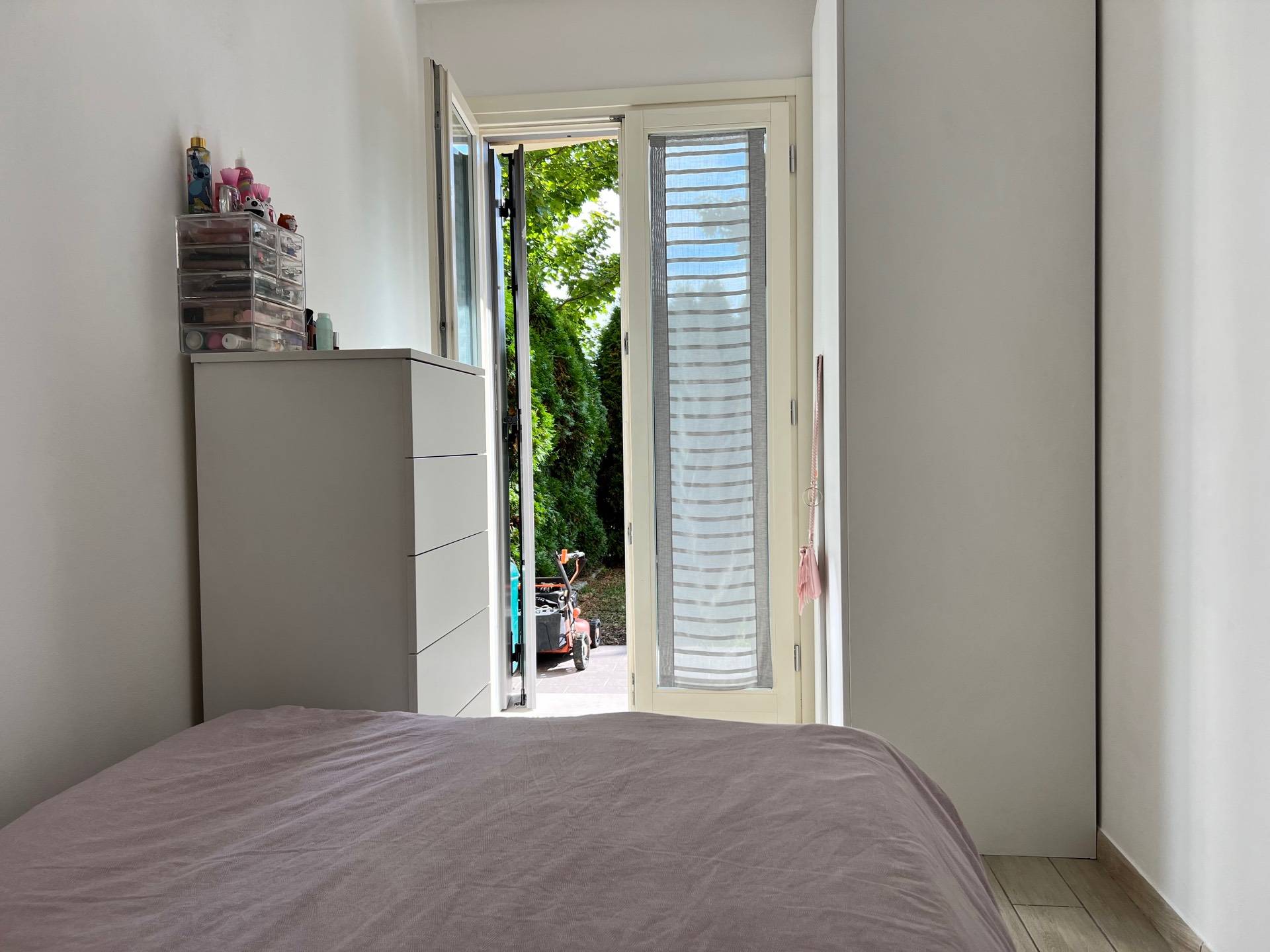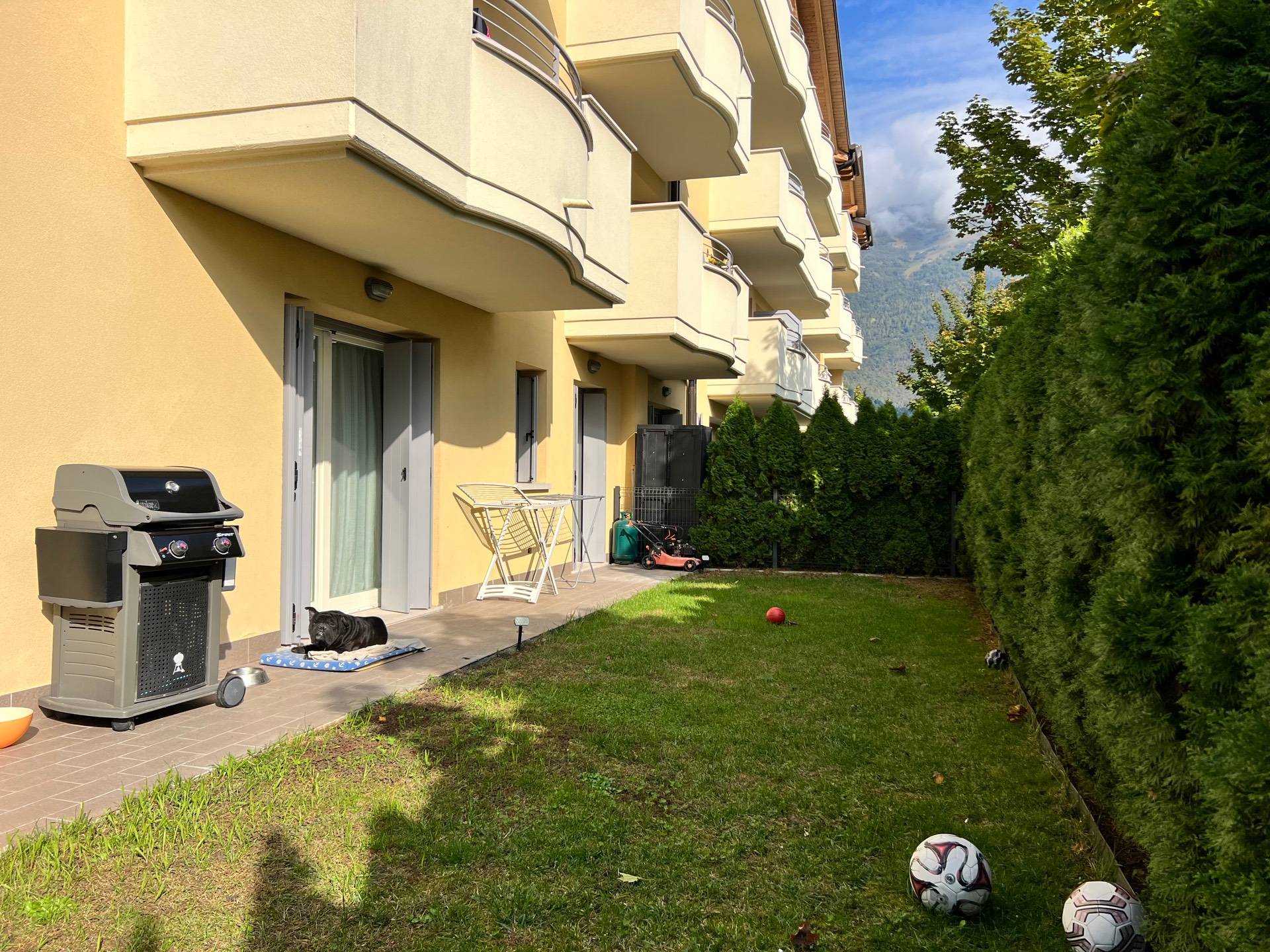 Da tutte le camere e dalla zona giorno è possibile accedere al giardino privato di circa 120 m² che circonda l’appartamento su 2 lati. Spazio ideale per far correre i bambini o gli animali domestici e trascorrere piacevoli momenti all’aria aperta. Illuminato nelle ore serali.