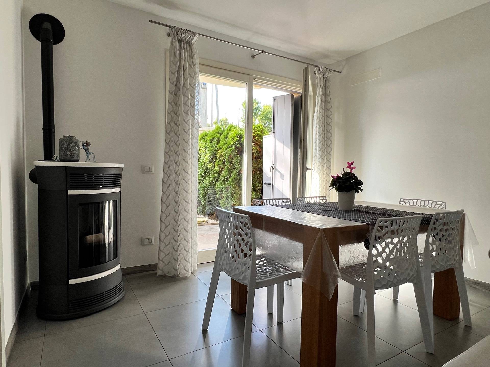Riscaldamento a pavimento con caldaia a condensazione autonoma a metano. Termostati in ogni stanza. Presente cappotto e la predisposizione per inserire due condizionatori. APE classe “B”.