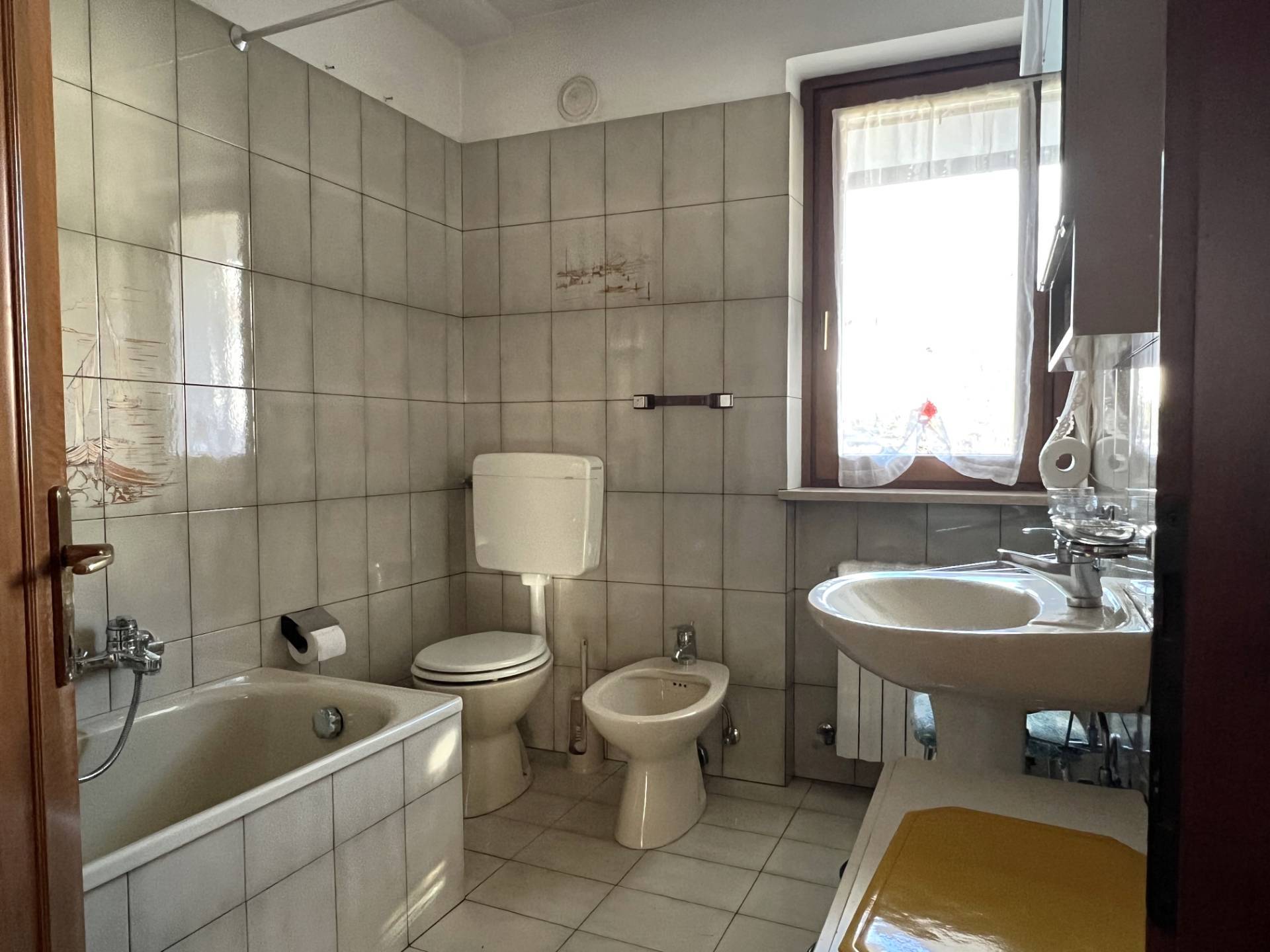 PIANO PRIMO con accesso sul soggiorno collegato alla cucina, camera matrimoniale, camera singola e bagno con vasca. Presenti due terrazzi, uno a sud e uno a nord con bellissima panoramicitá.