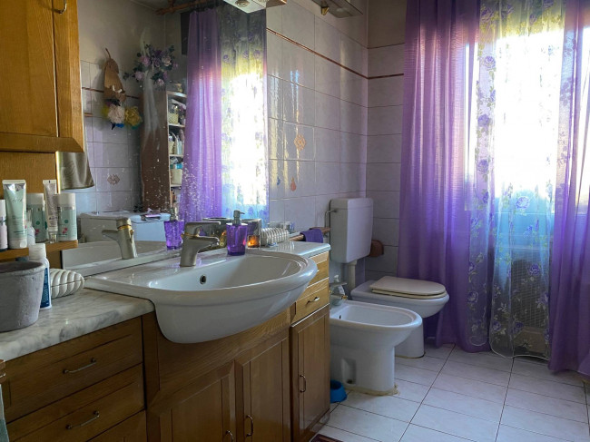 Tramite la scala esterna si accede all'Appartamento al primo piano cosi comporto: ingresso con disimpegno, cucina di dimensioni adeguate dove trova spazio un tavolo da pranzo per le esigenze della famiglia, un ampio soggiorno molto luminoso esposto a Sud, due camere da letto e bagno con vasca e doccia.
