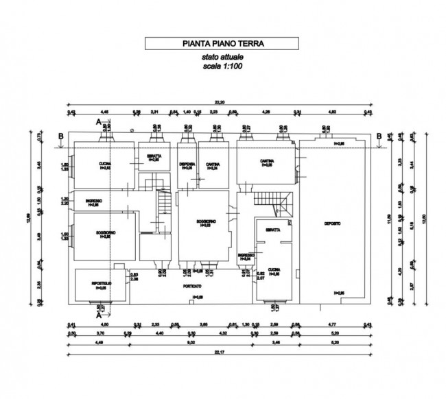 Il complesso é completamente da ristrutturare perché disabitato da diversi anni e si compone come segue: