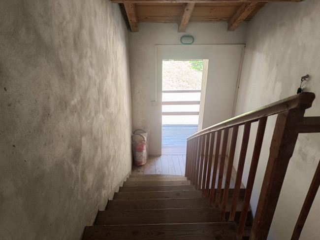 L'Appartamento si trova all'interno di un edificio risalente agli anni '50 con spessa muratura e sasso e tetto in legno e composto da 3 unitá, una per piano.